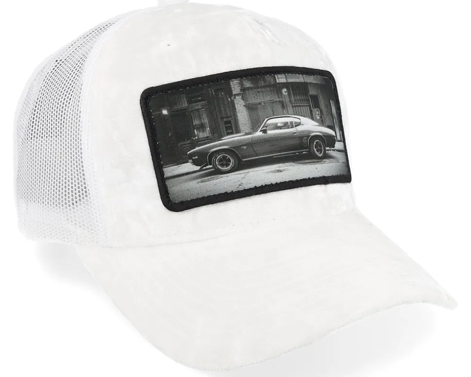 American Muscle Car In The Street Velvet White A-Frame Trucker – Calza Pennello