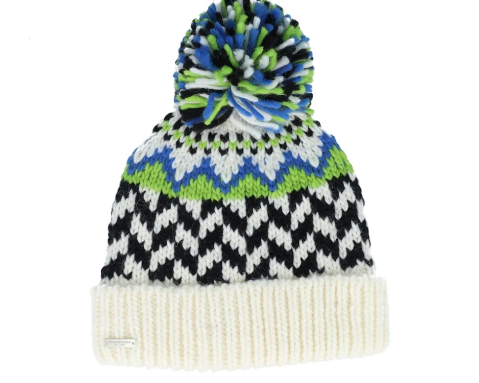 Knitted Beanie White/Black/Green/Blue Pom – Seeberger
