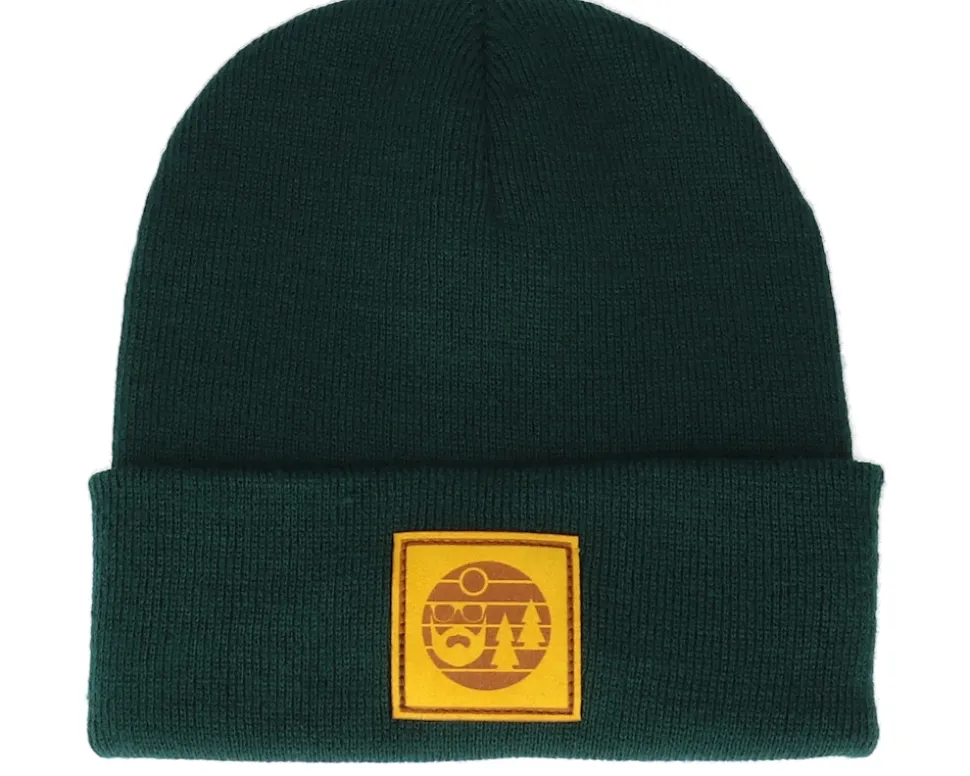 Sunset Logo Patch Bottle Green Beanie – Bearded Man