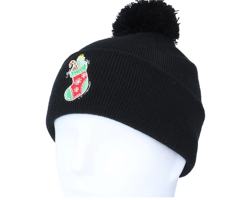 Kids Christmas Sock Gift Black Pom Pom Beanie – Iconic