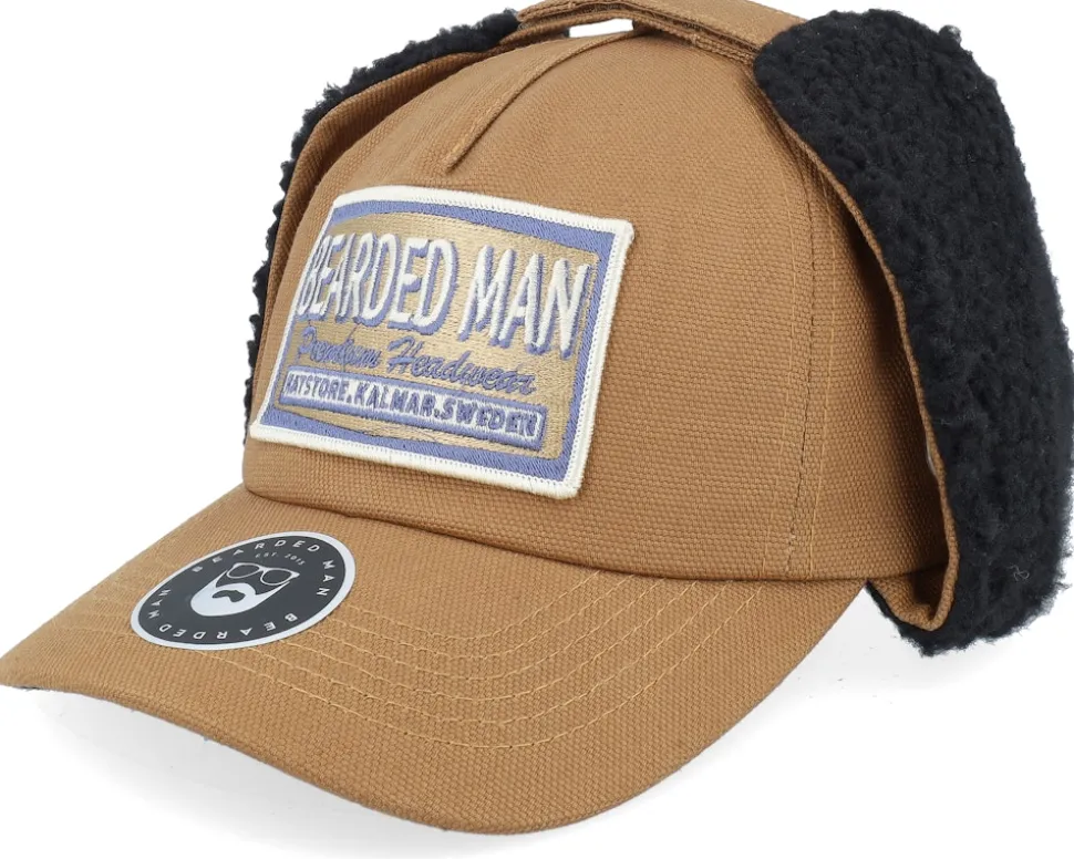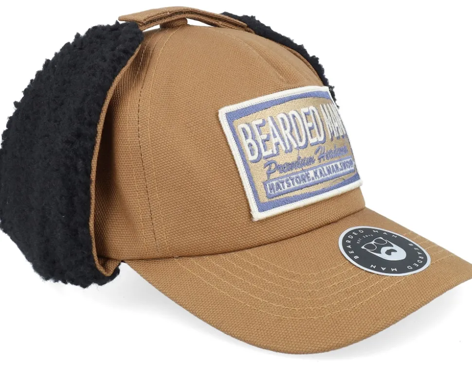 Logo Khaki/Navy Golfer Caramel/Black Earflap – Bearded Man