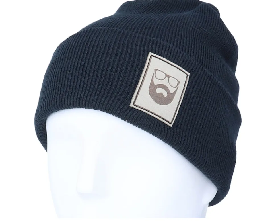 Logo Patch Navy Beanie – Bearded Man
