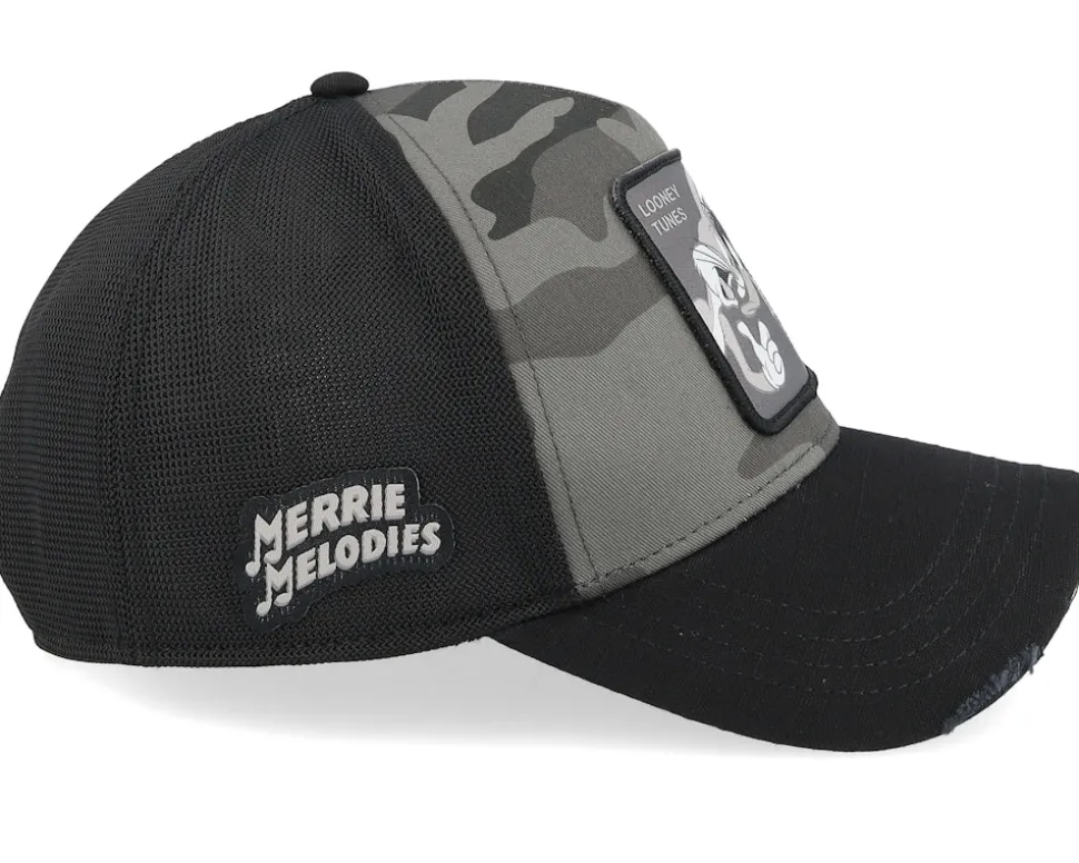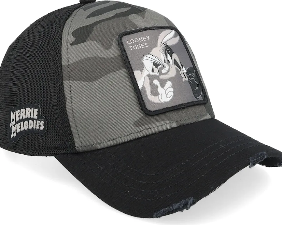 Be the first to review “Looney Tunes Bugs Bunny Daffy Duck Black/Camouflage A-Frame Trucker – Capslab” Cancel reply