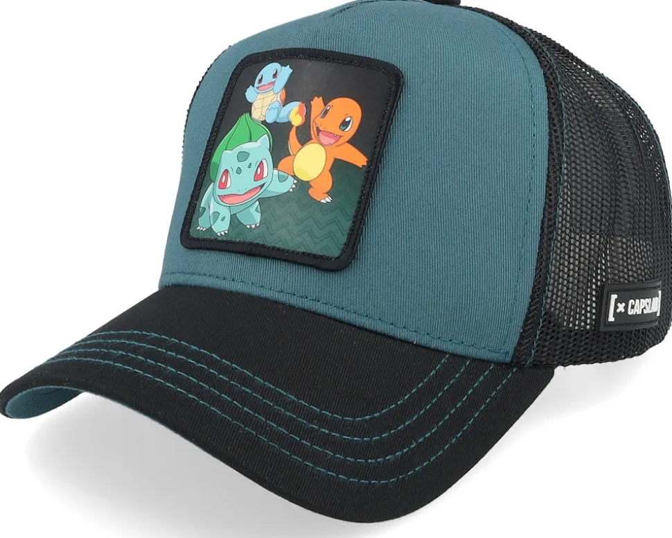 Pokemon Starters Black/Dark Green A-Frame Trucker – Capslab