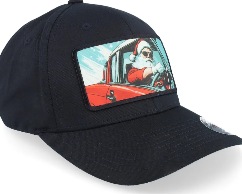 Santa Claus Going For A Ride Black Flexfit – Ho-Ho-Hats