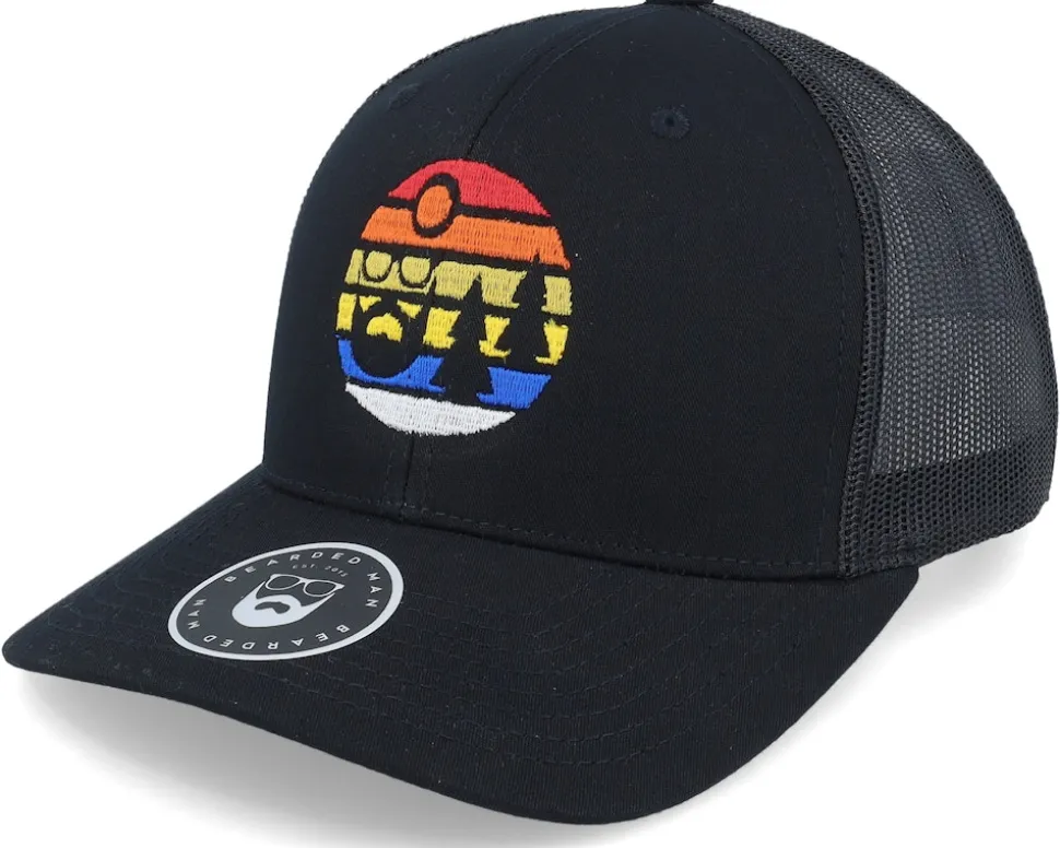 Sunset Logo Black Trucker – Bearded Man