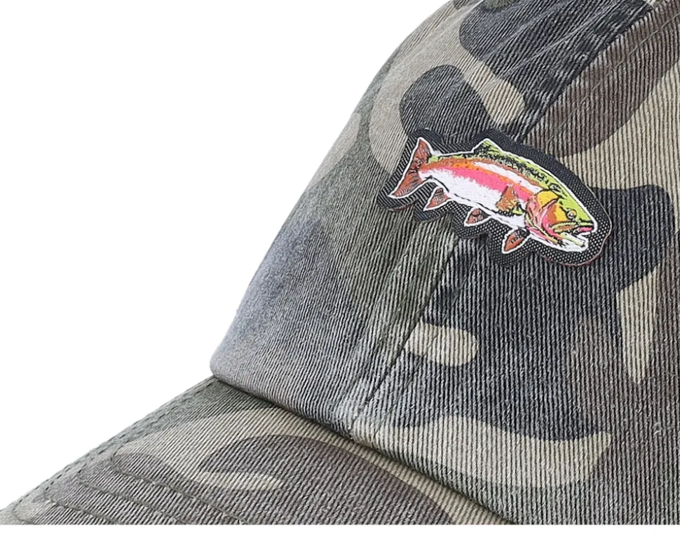 Tiny Rainbow Trout Fish Vintage Washed Jungle Camo Dad Cap – Skillfish