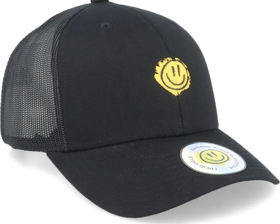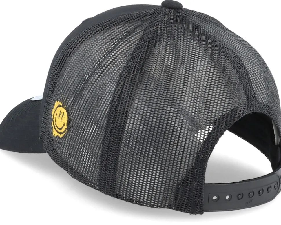 Trippy Smiley Retro Black Trucker – Lucid Smile